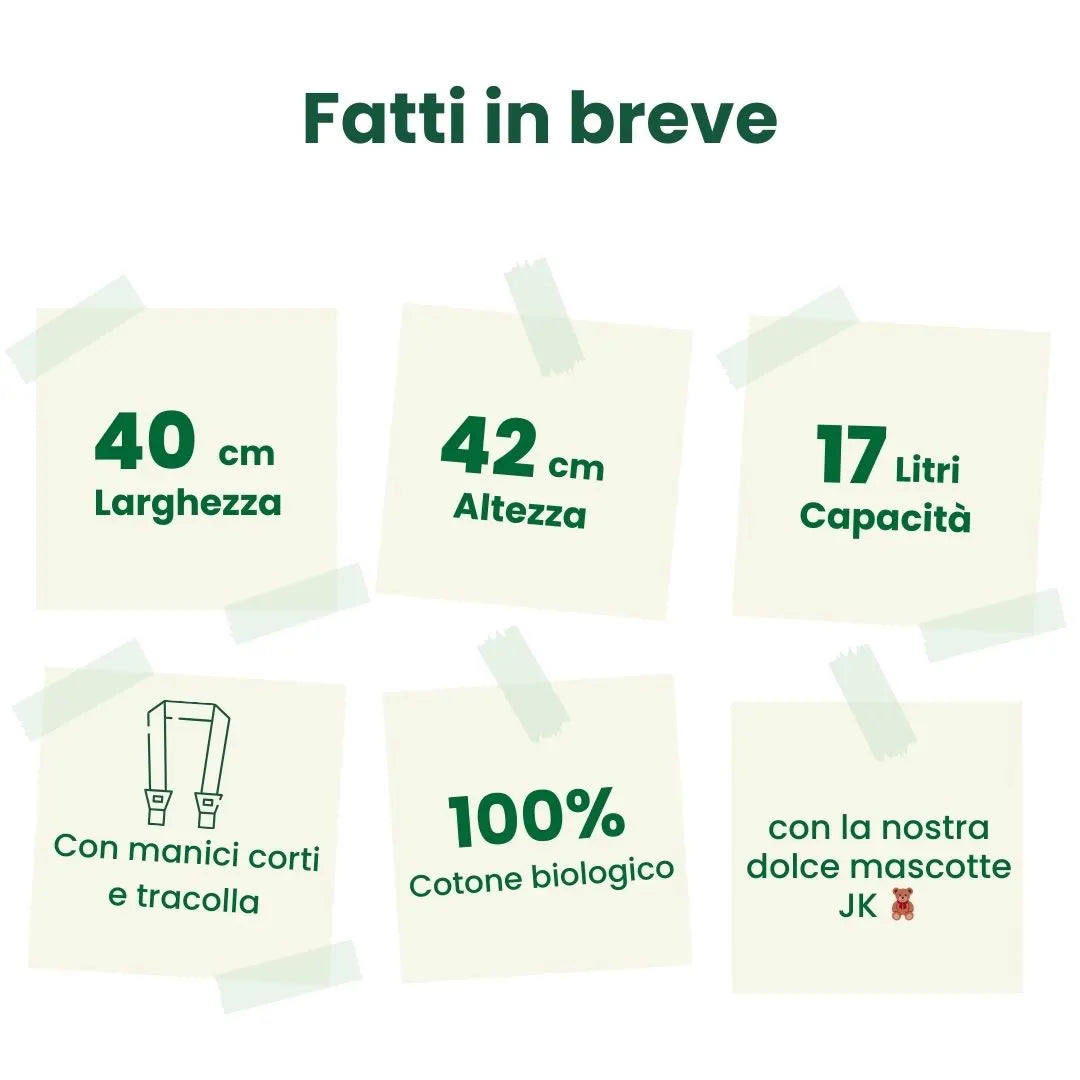 Realizzata in 100% cotone biologico, unisce funzionalità e rispetto per l’ambiente.