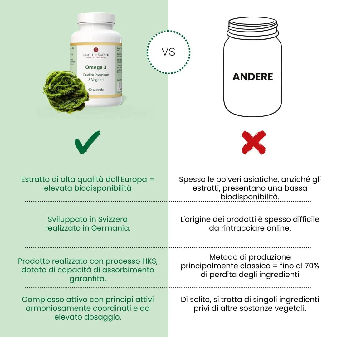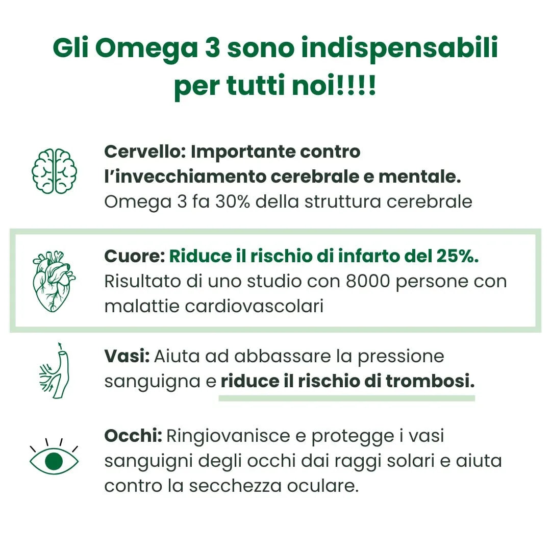Perfetto per chi desidera i benefici dell’Omega 3, ma senza ingredienti animali o rischi di contaminazione.