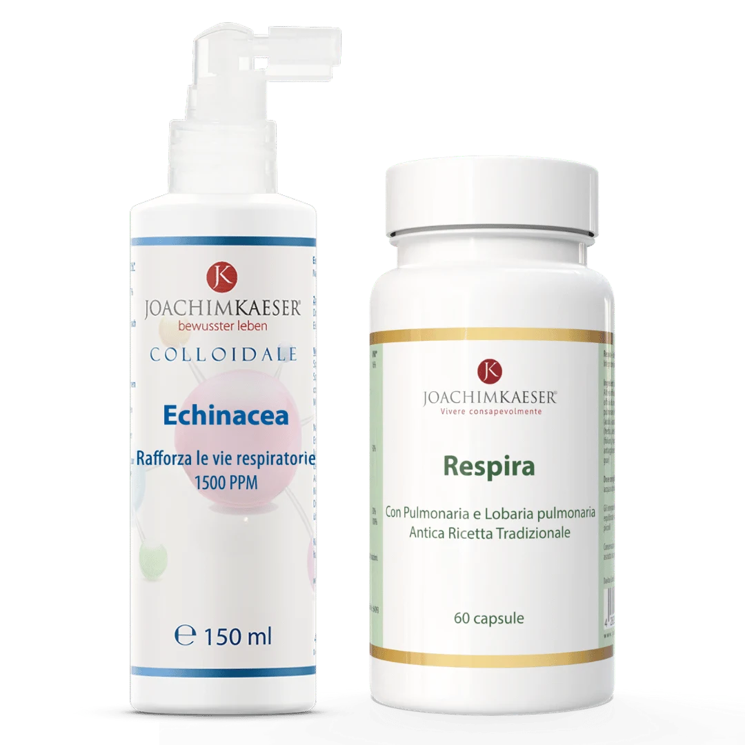 Il Polmone Set combina due formule naturali altamente biodisponibili per sostenere il comfort respiratorio, la sensazione di aria pulita e la naturale funzione delle mucose.